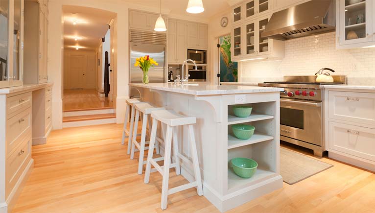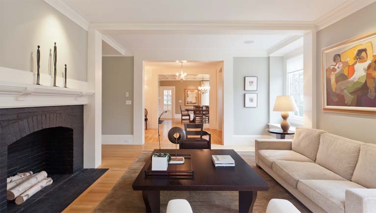 Forty years ago the entire interior of this turn of the century Arts and Crafts shingle-style house was gutted and replaced by a modern seventies design. All that remained among the brushed chrome and plate glass was the original hand carved newel post and balustrade in the front hall. The current renovation was guided by careful investigation into the structure’s past elegance. The result was a stylish, subtly contemporary interpretation of the home’s original design. The completed job was a perfect fit to the original house, so natural that it was hard to believe it was a down-to-the studs restoration.