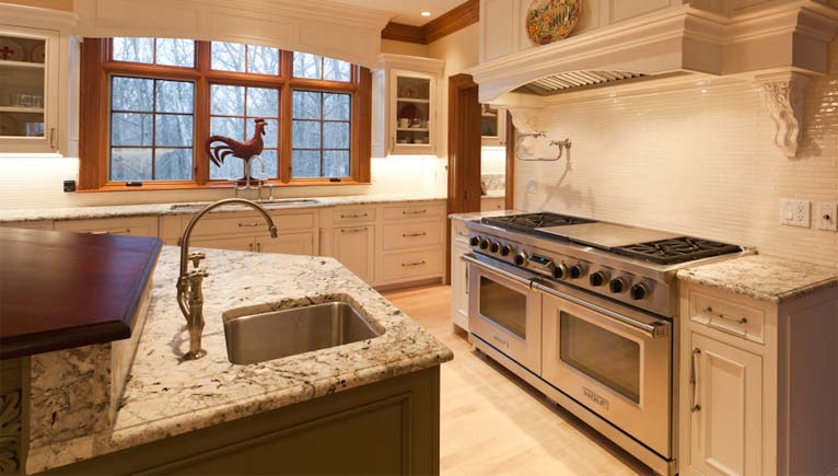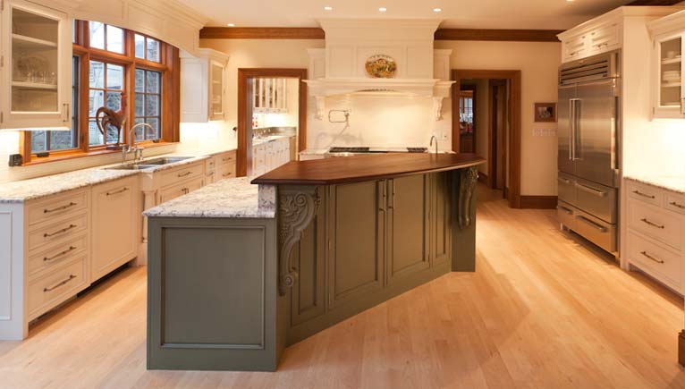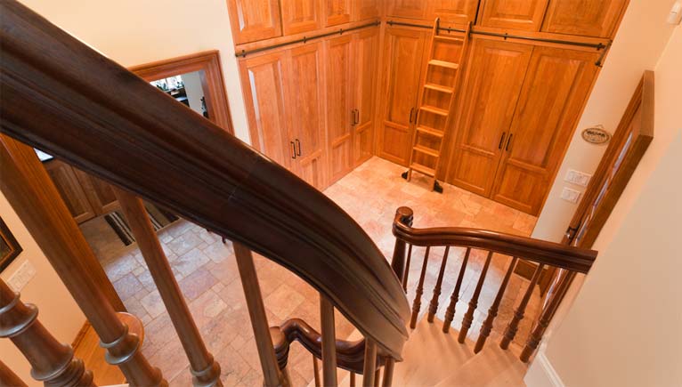 This home started life as the unbalanced product of a quick development. The house’s proportions were disjointed; details and the building materials were un-harmonious. But our client saw its potential; it had “good bones”. A thorough re-fitting with natural woodwork, stone, graceful stairways and elegant built-ins turned this spacious house into a gracious home.